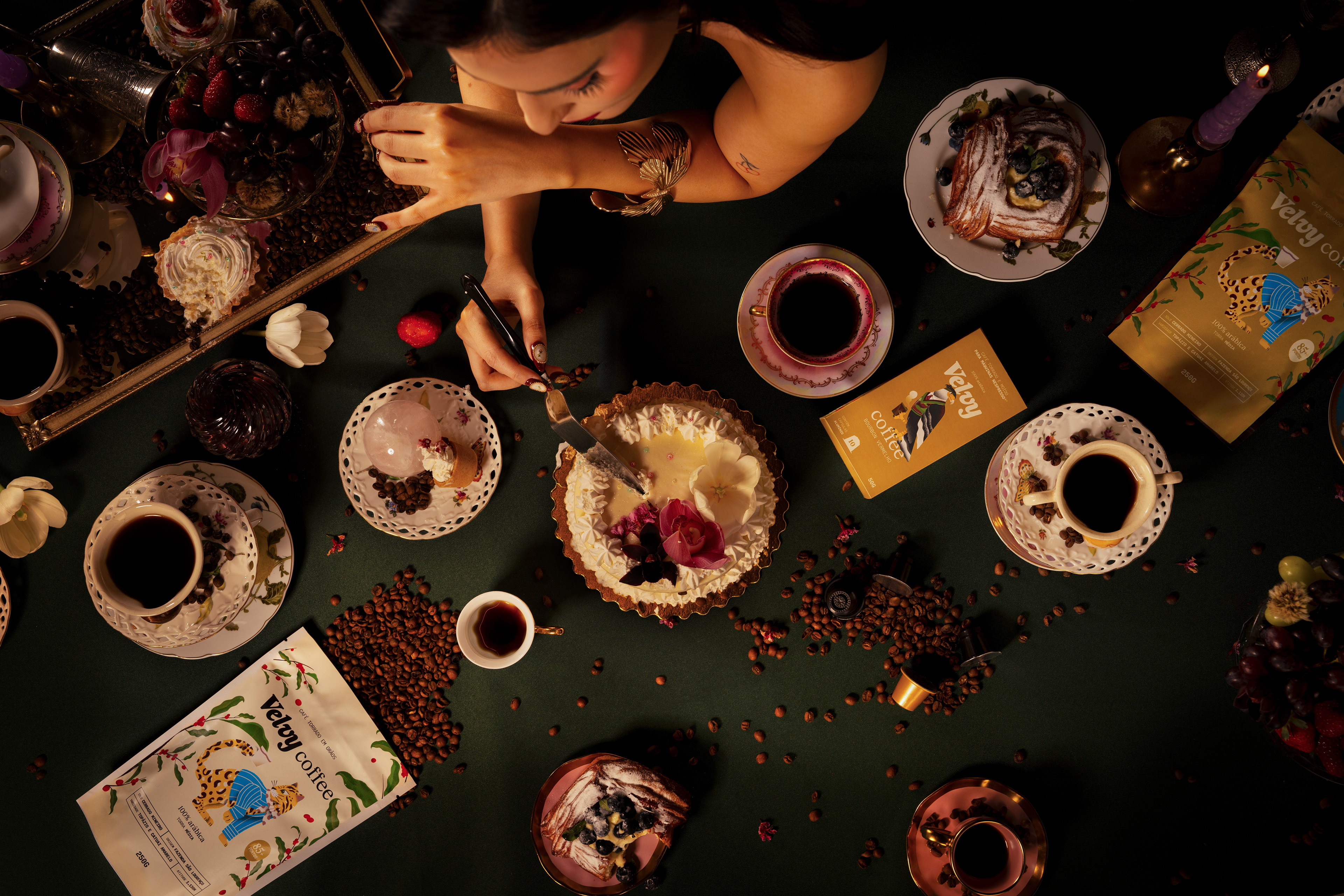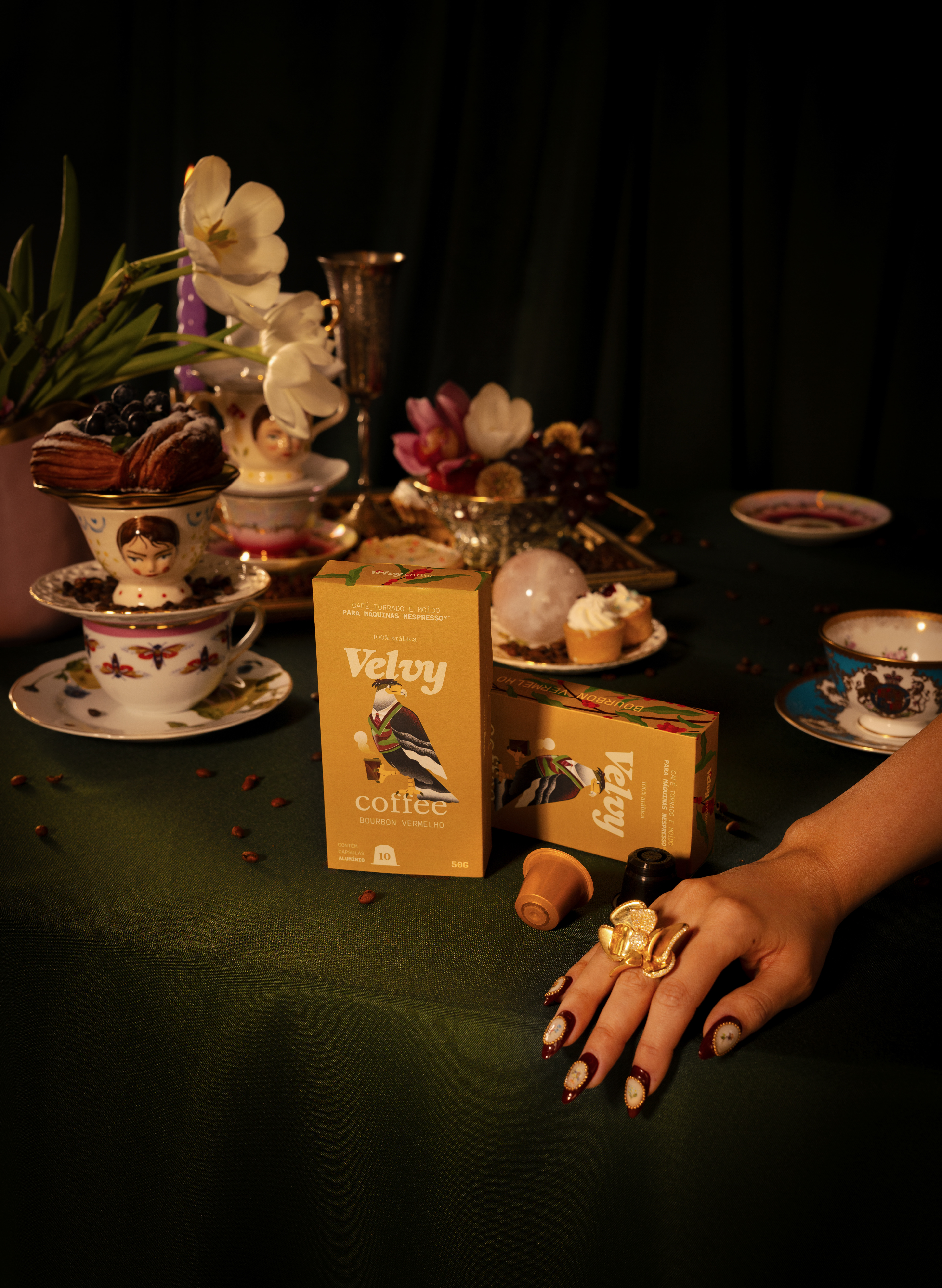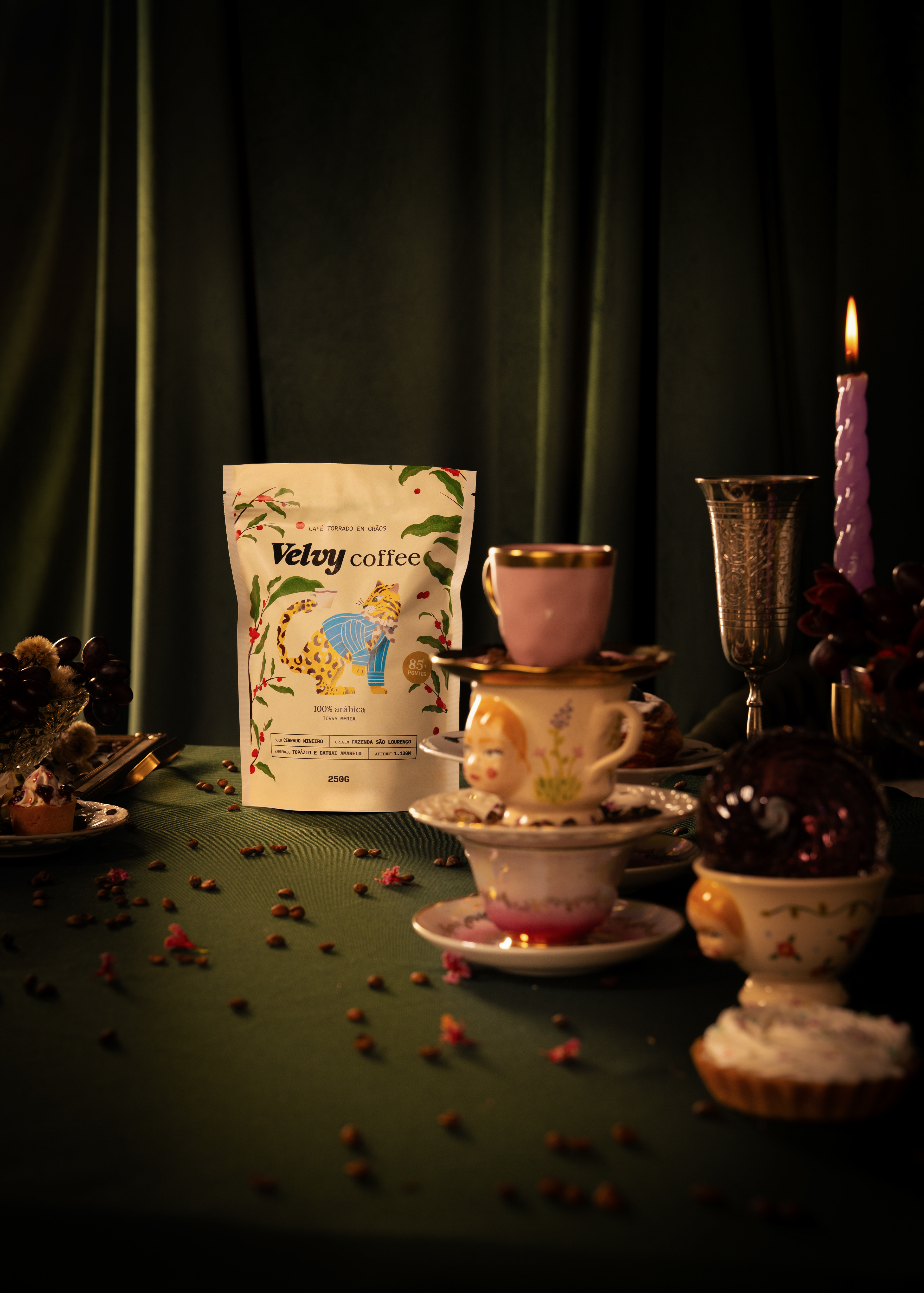 Lançamento para a marca Velvy Coffee, algo totalmente autêntico usando os aromas e composição de cada café para pensar a arte e construir esse universo fantástico.